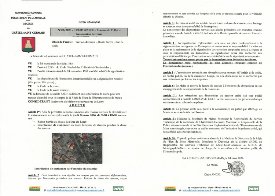 En raison de travaux de remise en état de la chaussée (réfection des enrobés)