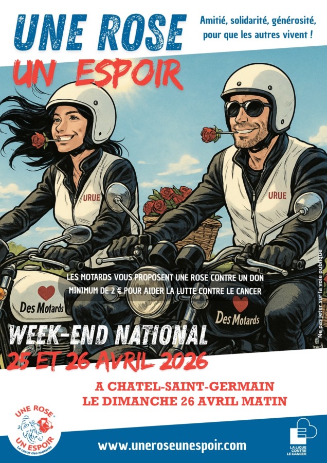 Les motards de l’opération Une Rose un Espoir seront présents sur notre commune : DIMANCHE 26 AVRIL 2026 MATIN
