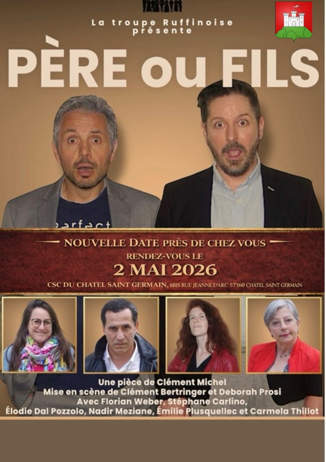 Pièce de théâtre : Père ou Fils, représentation le samedi 2 mai au centre socioculturel de Châtel-Saint-Germain.
