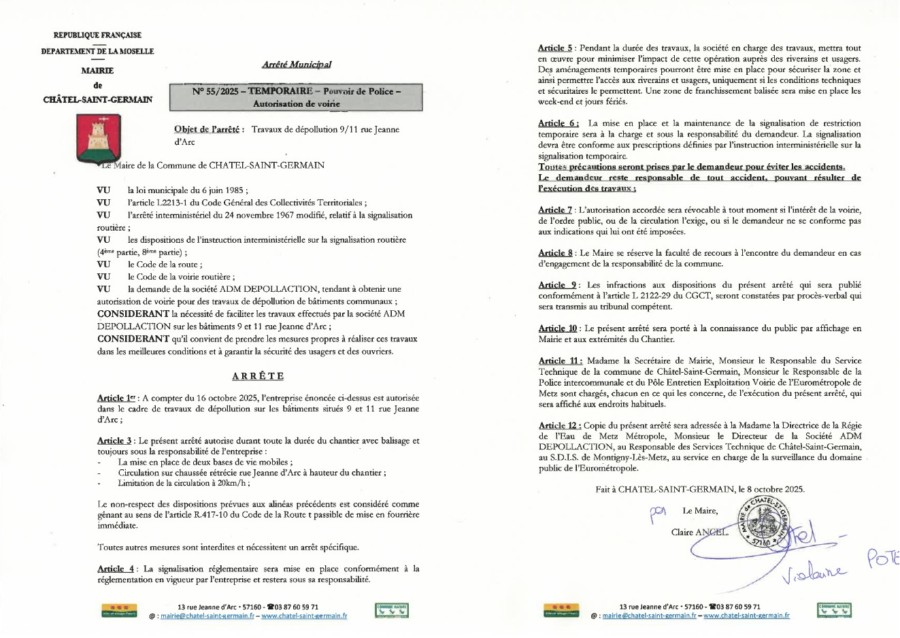 A compter du jeudi 16 octobre des travaux de dépollution vont avoir lieu sur les bâtiments situés au n°9 et 11 rue Jeanne d’Arc